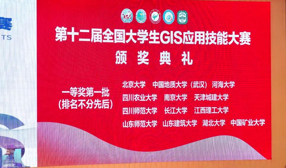 第十二届全国大员工GIS应用技能大赛由中国地理信息产业协会、中国地理学会主办,是地理科学领域全国性参赛水平最高、规模最大的顶级赛事。本届大赛是历届赛事中规模最大、参赛队伍最多的一次,吸引了北京大学、浙江大学、南京大学、北京师范大学、武汉大学等193所国内高校队伍参赛。