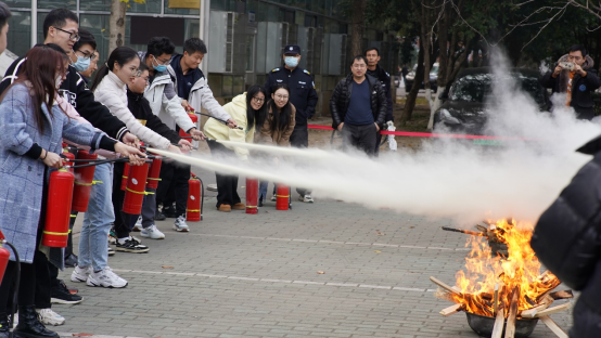 会后,组织了灭火器使用应急演练活动,由廖教官详细介绍和示范了灭火器的正确方法,现场工作人员模拟了火灾发生的情景,在场师生亲自体验了灭火演练过程,通过现场讲解和模拟演习,使大家对消防应急处置有了更深刻的认识。