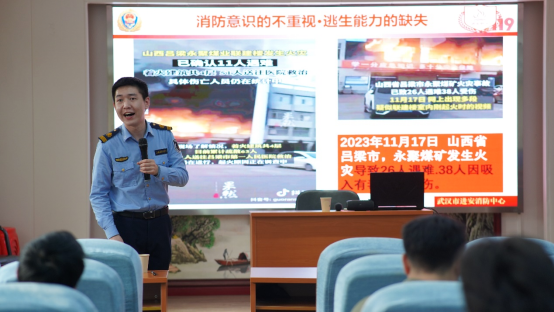 随后,廖汉龙教官针对“安全第一,预防为主”的理念,作了关于《“预防为主,生命至上”主题培训》的讲座。他生动形象地解释了实验室消防安全知识及应急自救措施,引导在场师生树立正确的消防安全意识,并讲授了正确的应急处置方法以及在火灾发生时如何迅速、冷静地自救、报警和逃生等。