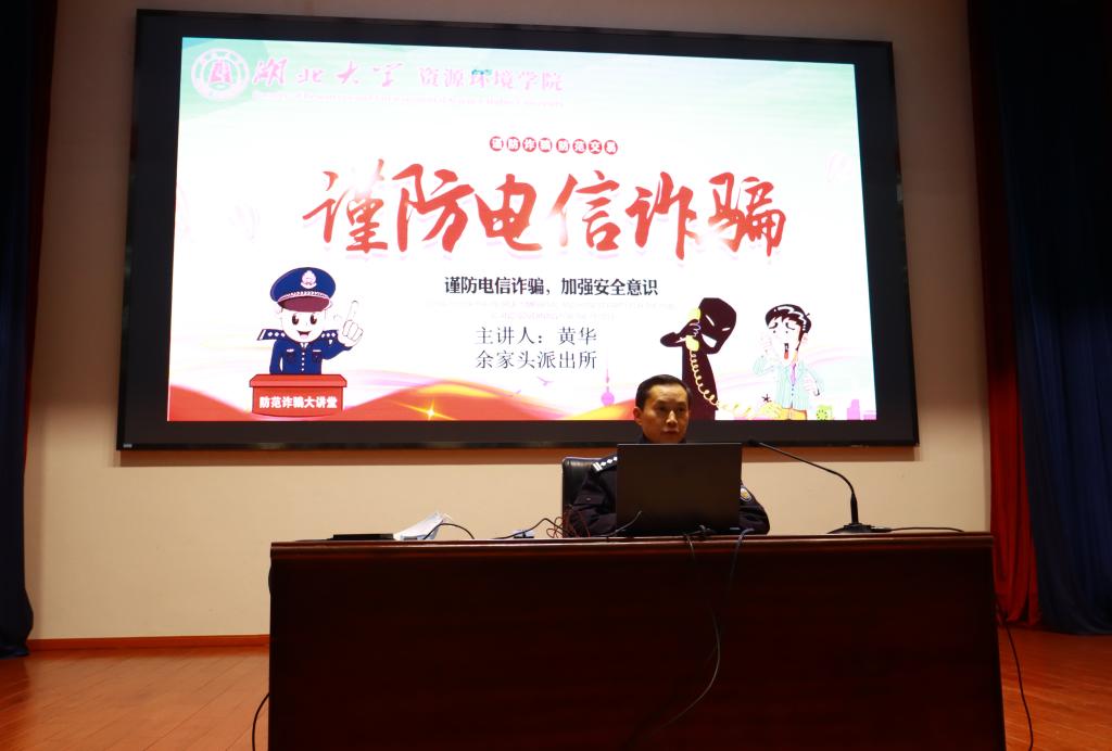 为了进一步提高广大师生防诈骗意识,增强对电信网络诈骗犯罪的辨别能力和应对能力,有效遏制电信网络诈骗案件多发态势,构建安全文明、稳定和谐的校园环境,2023年12月19日晚,皇冠集团网站邀请余家头派出所黄华警官为皇冠集团网站硕博研究生作防诈骗及毒品预防专题讲座,本次讲座皇冠集团网站全体员工参加。
