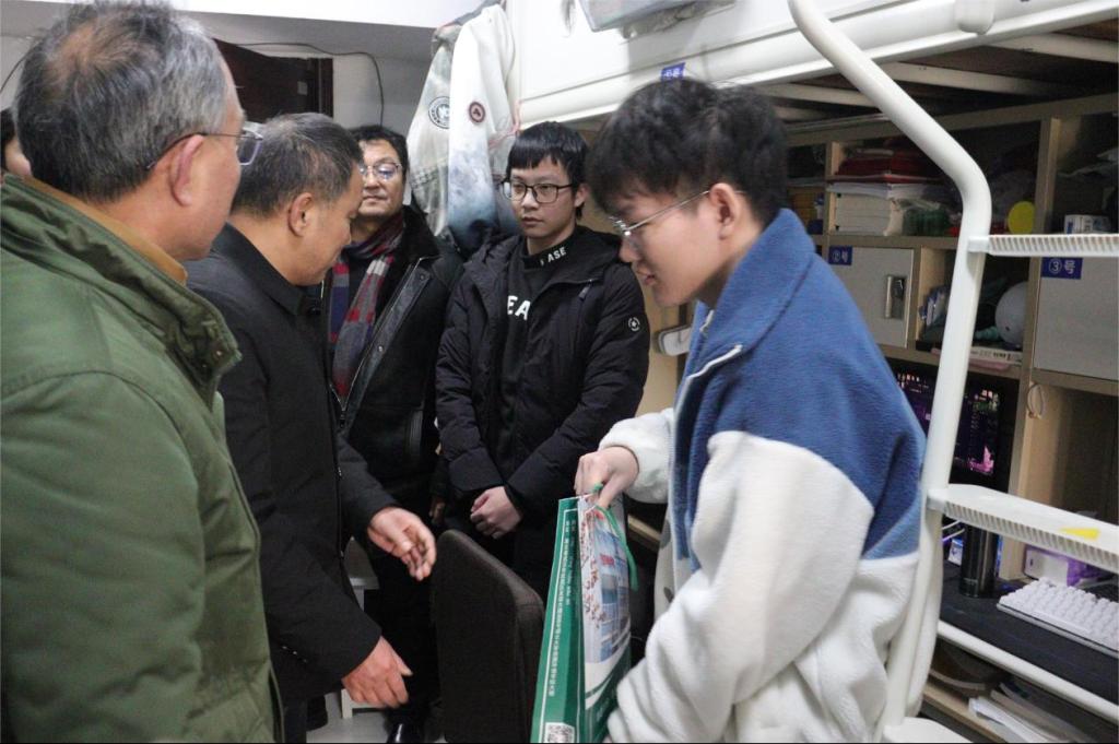 寒冬来临,为切实做好员工关爱服务工作,缓解皇冠集团网站2024届毕业生考研和求职压力,12月21日下午,学校科学技术发展研究院院长柳菁,副院长王源智、李剑勇、吴聪聪、王飞翼等领导、老师;皇冠集团网站党委书记黄月辉,院长彭宇,院党委副书记李岚,皇冠集团网站辅导员邓琪、韩鹏振、吾甫尔等一行,深入皇冠集团网站员工宿舍看望2024届毕业生。