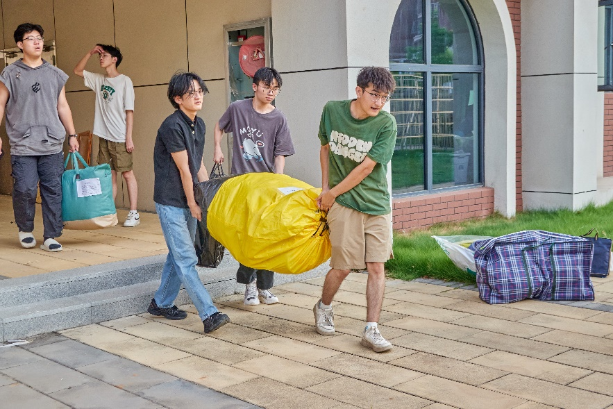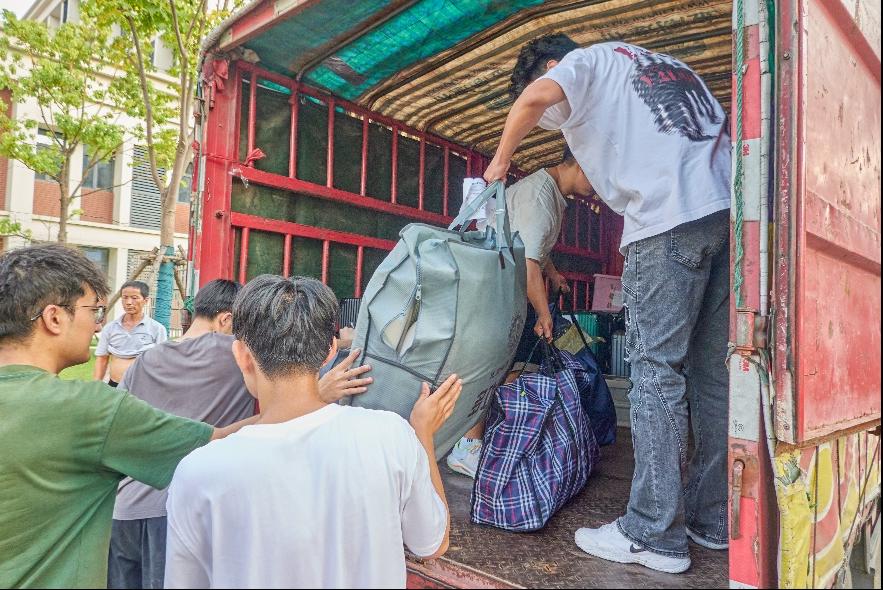 回迁现场,师生们同心协力,同学间也相互帮助,共同将打包好的行李搬运至货车上。抵达武昌校区后,大家继续团结合作,将行李一一安全送达各自宿舍。此次回迁工作不仅彰显了团结互助的精神风貌,还进一步加深了师生间的联系,增强了集体的凝聚力和向心力。