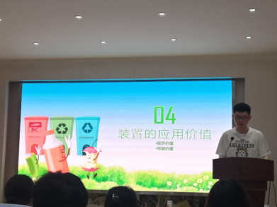 材料科学与工程皇冠集团网站胡成同学从项目背景、装置组成、视频展示、智能未来等四个维度介绍了智能瓶罐垃圾回收装置。他从政治环境、社会环境、经济环境和技术环境等四个方面分析了该项目的前景,认为智能瓶罐垃圾回收具有减少环境污染、创造更大价值、提高效率与节约成本方面的意义,结合视频展示讲解了装置的组成部分,包括供电装置、分类装置、压缩装置、存储装置和其他部分(LED屏幕、微信小程序返现、指示灯、语言对话功能等),另外该装置在公交车站、公园座椅和购物广场等不同场景可以有不同功能,这也是该装置的特殊之处。