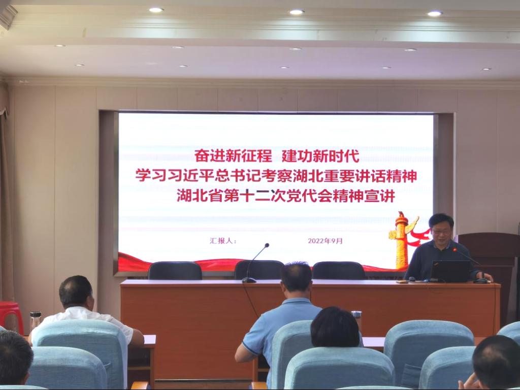 李兆华以《奋进新征程 建功新时代》为题,深入阐述了习近平总书记考察湖北的重要讲话精神,随后从湖北省第十二次党代会情况简介、准确把握过去五年的工作成绩和启示、准确把握未来五年的工作目标和举措三个层面,对湖北省第十二次党代会精神进行了全面解读。