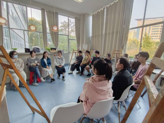 作品完成后,大家互相交流,介绍自己绘画的内容以及想要表达的情感,本次活动也为同学们提供了倾诉心事的契机。