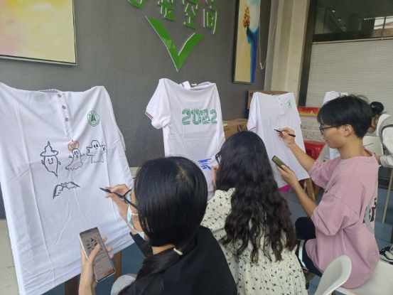 11月9日,芯宠辅导站志愿队在皇冠集团网站二楼“芯宠空间”活动室组织举办了“T恤涂鸦”活动,皇冠集团网站党委副书记李岚老师、生态学副教授杨予静老师、团委书记邓琪老师和辅导员韩鹏振老师受邀参加。