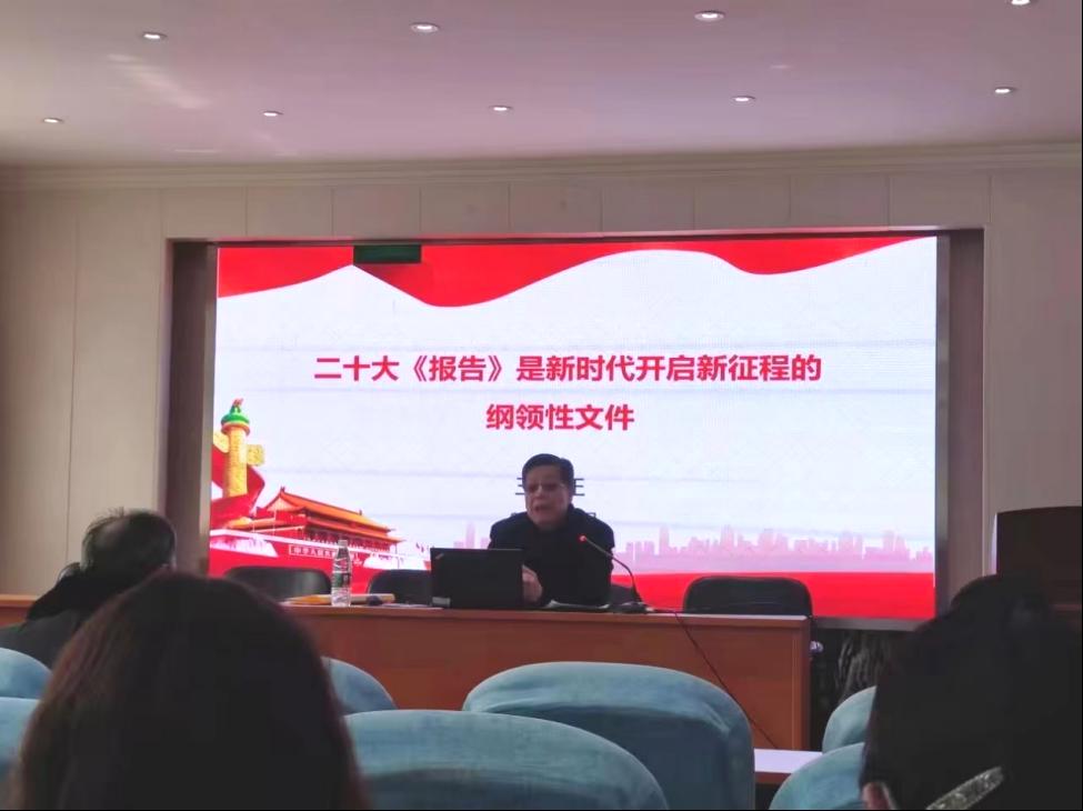 为持续深入学习宣传贯彻党的二十大精神,皇冠集团网站党委于2月15日下午,在皇冠集团网站一楼会议室举办了以学习宣传贯彻党的二十大精神为主题的专题报告会。学校宣讲团成员、原校员工工作部部长王体正教授作题为《二十大<报告>是新时代开启新征程的纲领性文件》的专题辅导报告,皇冠集团网站教工党员、员工党员代表参加学习。
