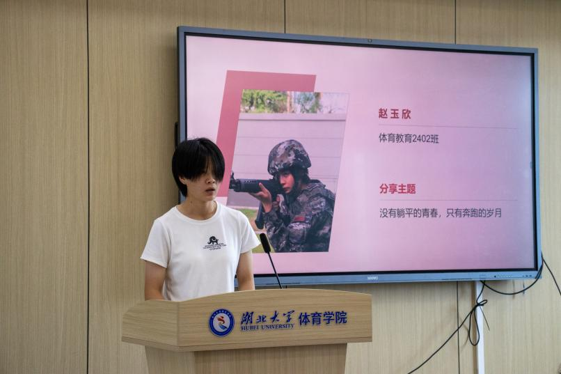 来自体育皇冠集团网站的赵玉欣学姐则分享了自己在武警部队的成长感悟。她坦言,初入军营时曾因“三点一线”的单调生活而迷茫,但在领导和班长的鼓励下,她逐渐明白“军人的价值不仅是靠轰轰烈烈来证明”。通过反复练习站岗执勤、提升业务能力,她在日复一日的坚守中读懂了“责任”与“担当”。