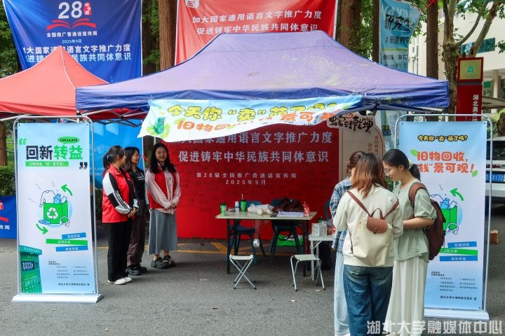 “同学来看一看!可以把自己的废旧物投放在这里,有偿回收哦!”9月20日,我校沙湖环保志愿队成员在嘉会园外摆摊,展示新学期新设施“智能环保回收柜”的用法用途,吸引众多师生了解并关注旧物回收。